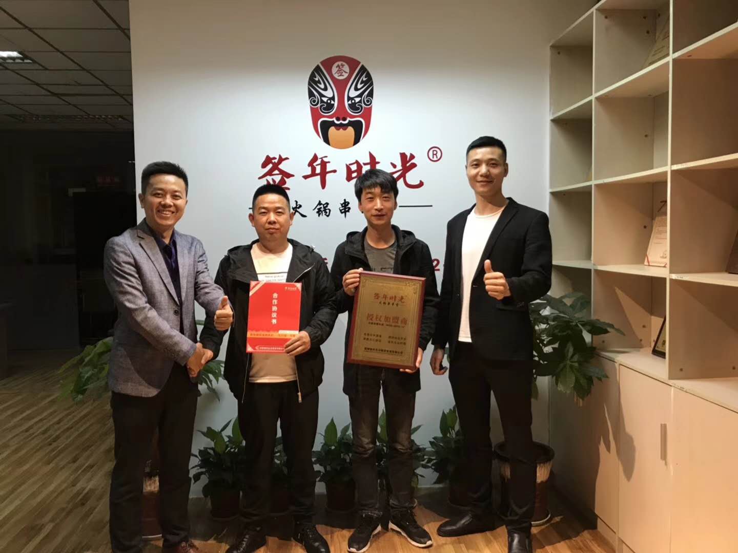 祝贺陕西西安的刘总、郭总成功合作签年时光火锅串串香品牌、经过多个品牌的对比 终决定选择我们、感恩遇见、感恩合作!