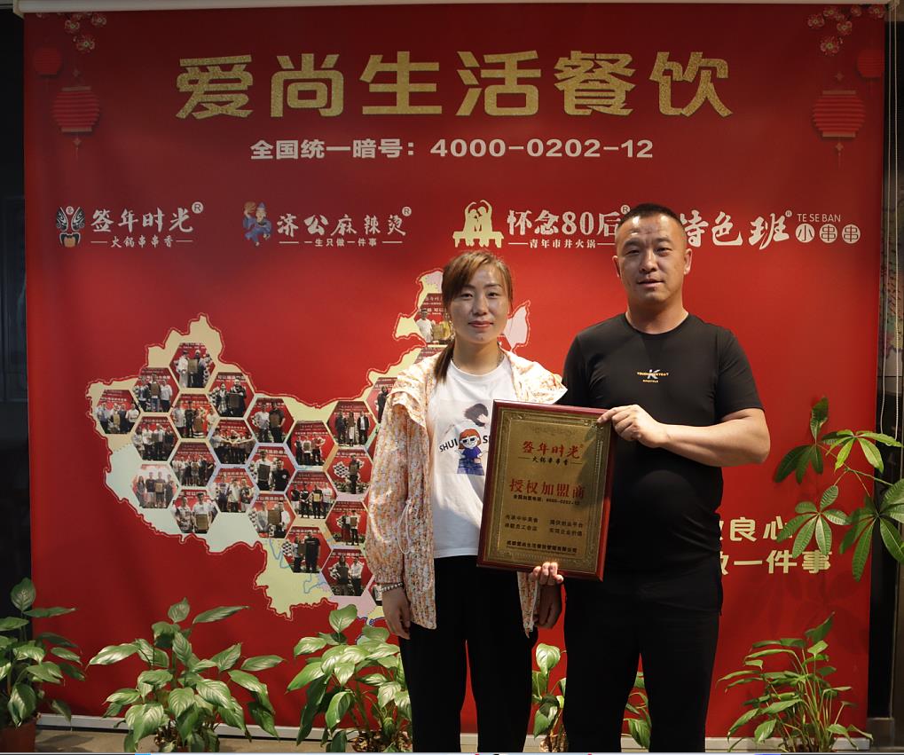 欢迎甘肃王总合作我们签年时光火锅串串香,王总自己有开着中餐店,近两年的中餐确实没那么好做,毅然决定改换串串香项目,主要是现在的消费人群变了,王总考察了多个品牌, 后还是觉得签年时光 适合自己目前的发展,感谢王总的信任和支持,提前祝王总生意兴隆,财源广进!
